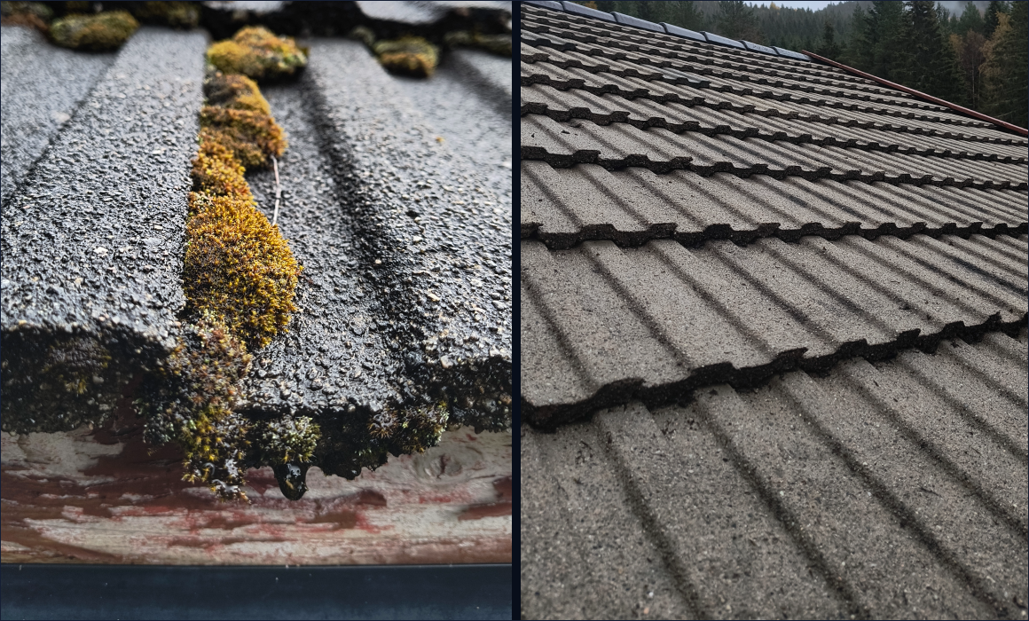 Vi fjerner mose, skitt og belegg fra tak, terrasser og vegger – rent og værbeskyttet.